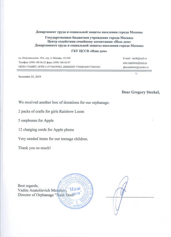 The first shipping with toys and small electronic items has reached the kids in Moscow! We are so happy to be able to help older kids and are looking for more successful toy drives!